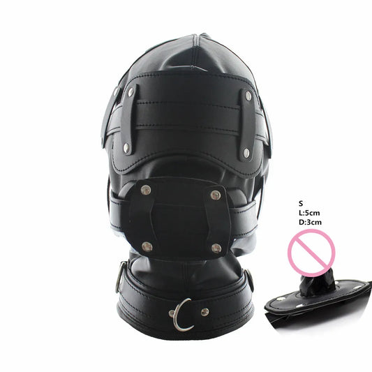 "Capucha Fetish con Mordaza de Dildo, Tres Colores – Juego Erótico de Dominación Total con Máscara Abrible y Gag Vibrador"