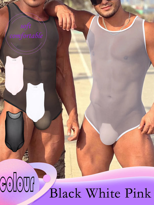 "Set de 3 Body Sin Mangas Transparentes para Hombre – Sensualidad Deportiva con Brillo Sedoso y Alta Elasticidad"