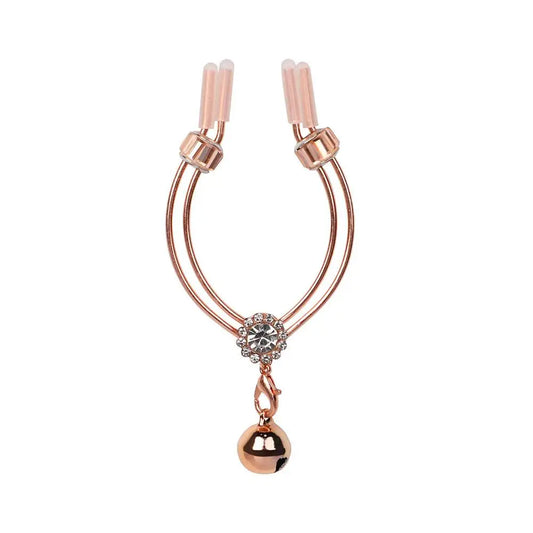 "Pinzas de Pezón y Clítoris con Diseño de Renos en Oro Rosado y Campanitas — Estimulador Sensual y Personalizable para Mujeres y Parejas"